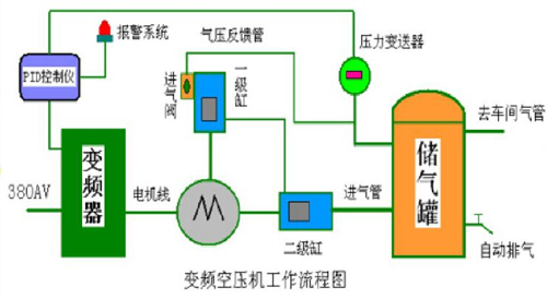● 采取變頻調(diào)速方式來降低空壓機電動機的軸功率輸出。
